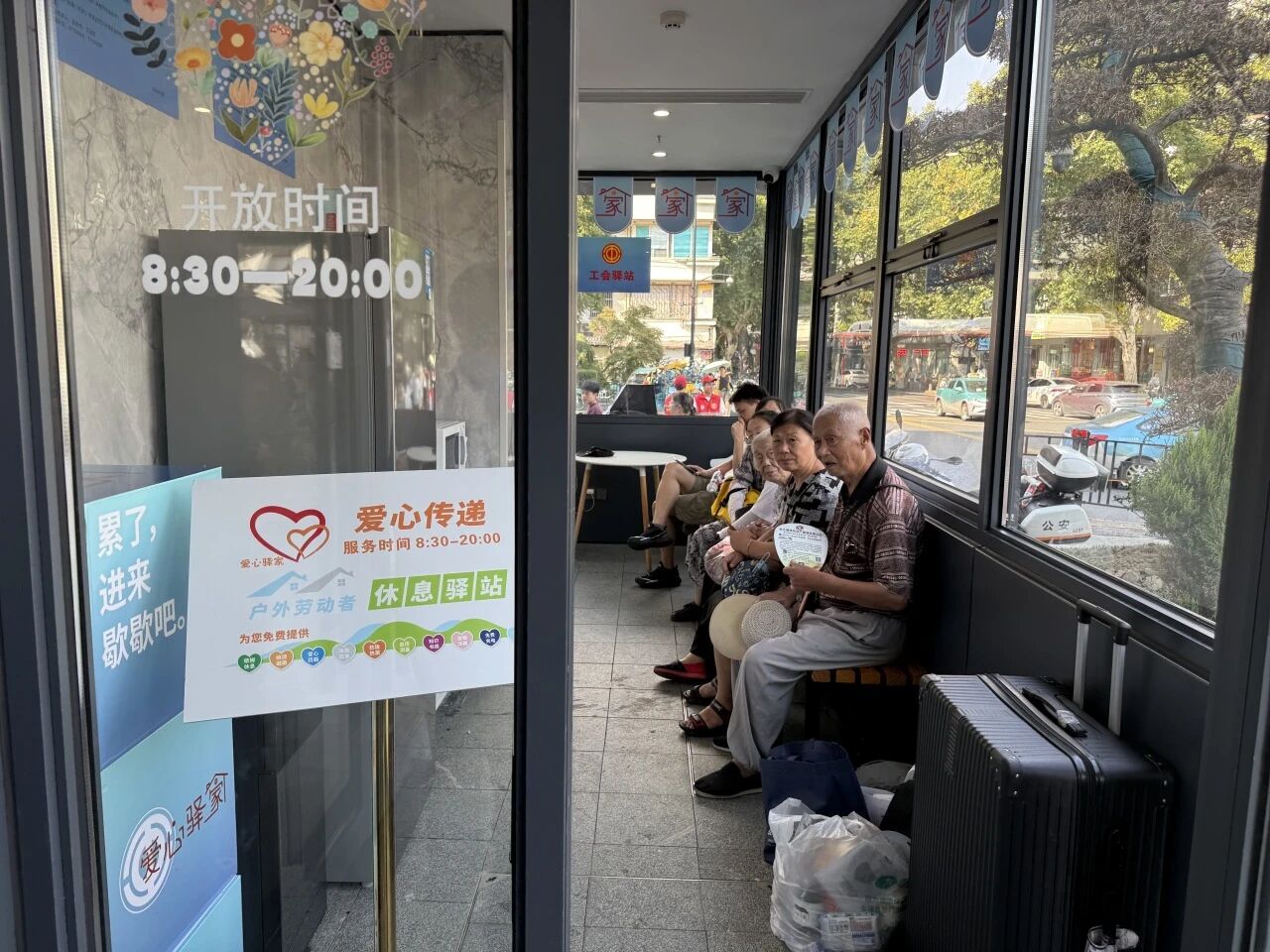 吴山花鸟城此次改造,除外观升级还全新设立独立的爱心驿家空间,为市民带来温暖。爱心驿家空间借鉴了杭州“民心工程”的服务经验,配备了桌椅、饮水机、冰箱、微波炉、应急药箱等设施,且设独立区域,不受市场客流影响。无论是烈日下奔波的快递员,还是游览疲惫的游客,均可入内休憩与饮水。期待通过这一方式,让户外劳动者与市民深切感受到“杭式温暖”。