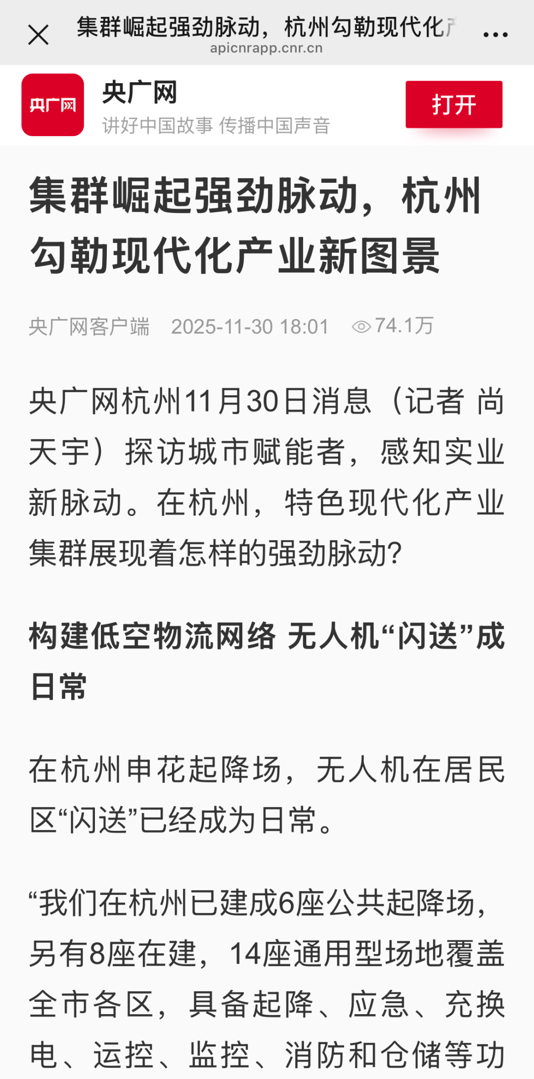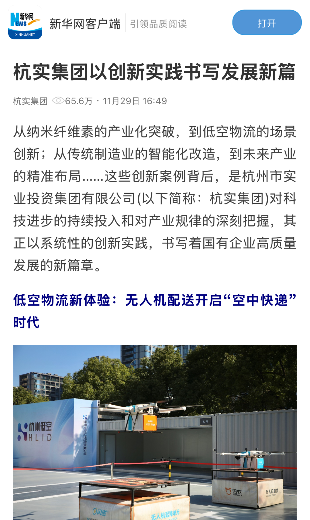 近日,人民日报、新华社、光明日报、中国日报、 中新社、央广网等十余家央媒走进杭实集团,探访集团旗下杭州低空公司、杭实资管投资项目西湖烟山、杭叉集团、杭化新材料,通过实地了解与深度交流,解读杭实集团新质生产力布局及产业创新实践。杭实集团党委书记、董事长钮健出席媒体座谈会并接受采访。